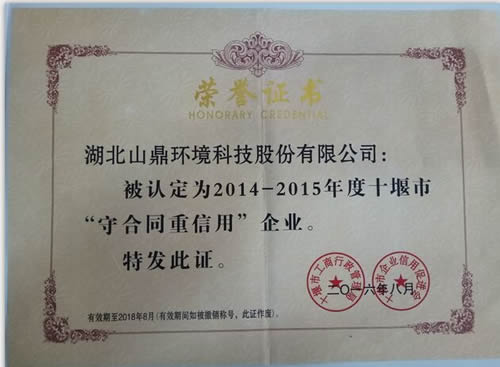 祝贺开云online(中国)获评由十堰市工商行政管理局、十堰市企业信用促进会颁发的(2014—2015年度)“守合同重信用”企业荣誉证书。